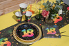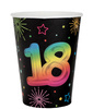 Zastawa jednorazowa z kolekcji Fiesta na osiemnaste urodziny. Kolor czarny z kolorową cyfrą i nadrukiem gwiazdek i kropek.