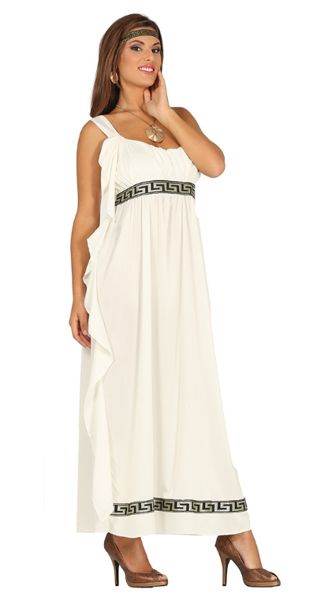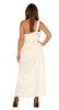 Biała suknia na jednym ramiączku z marszczonym dekoltem.