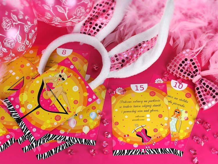 Zestaw 15 kart z zadaniami na wieczór panieński.