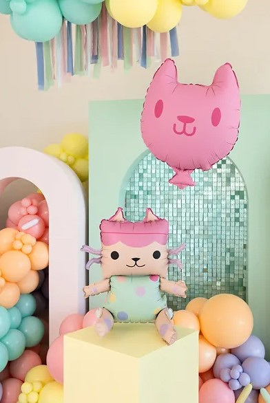Balon kotek: wymiary przed napompowaniem ok. 44 x 54,5 cm, po napompowaniu ok. 35 x 37 cm.