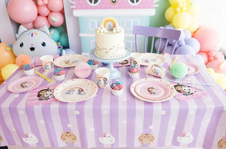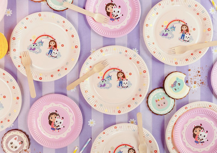 Talerzyki papierowe z motywem Koci Domek Gabi.