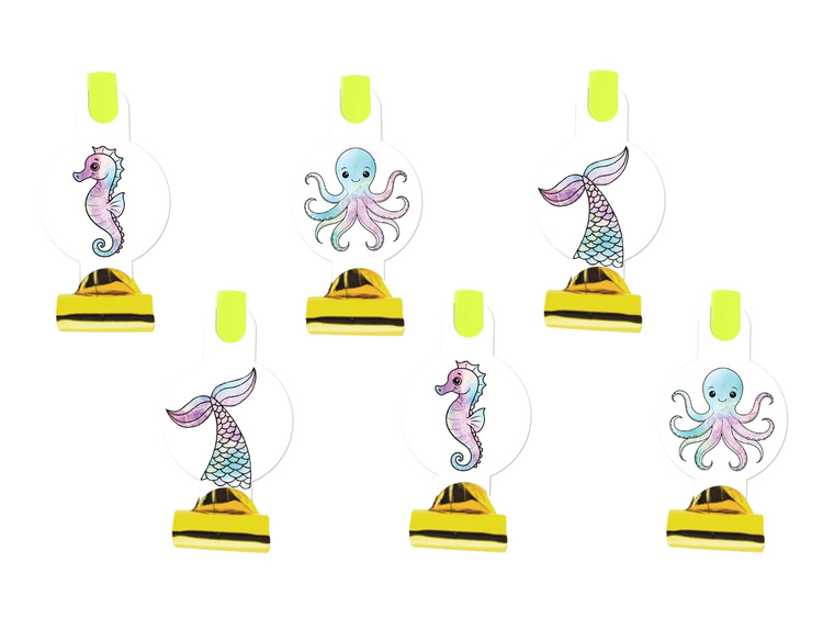 - Rodzaj: trąbki urodzinowe, rozwijane przy dmuchnięciu
