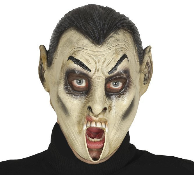 -maskę wampira z lateksu, posiada otwory na oczy, usta i nos