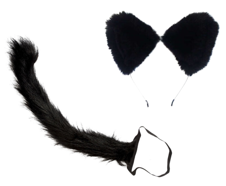 -ogon czarny, puchaty, mocowany na gumce, długość około 60cm.
