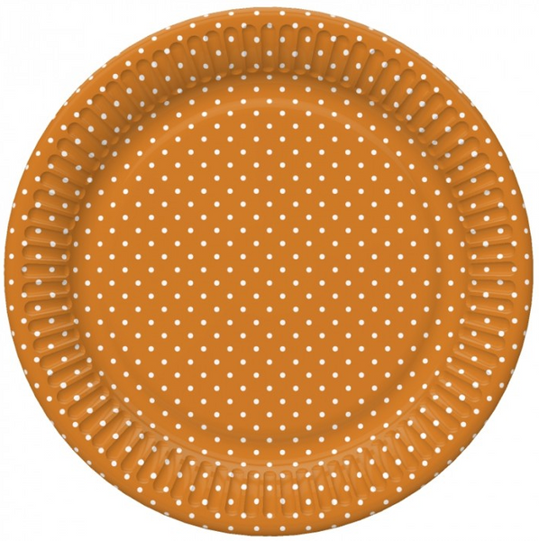 Talerzyki Papierowe Pomarańczowe w Białe Kropki.