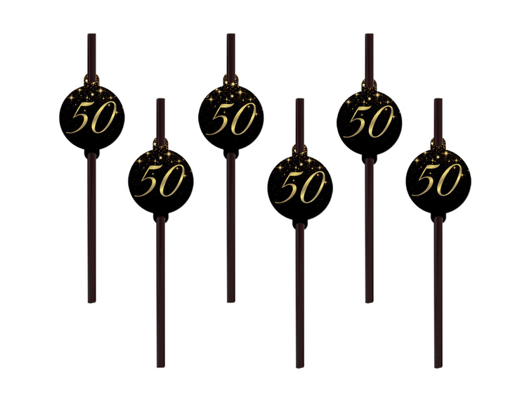 - Medalion z motywem 50 w złotym kolorze na tle z brokatowym efektem.