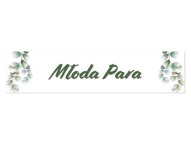 - Motyw eukaliptusa z eleganckim napisem „Para Młoda”.