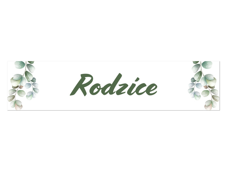 - Motyw eukaliptusa z eleganckim napisem „Rodzice”.