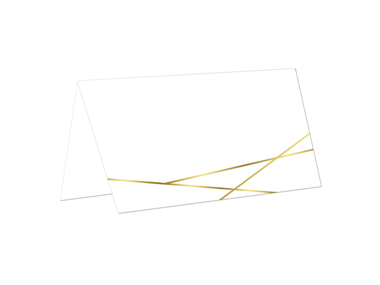 - Papierowe wizytówki składane z delikatnym motywem złotych linii.