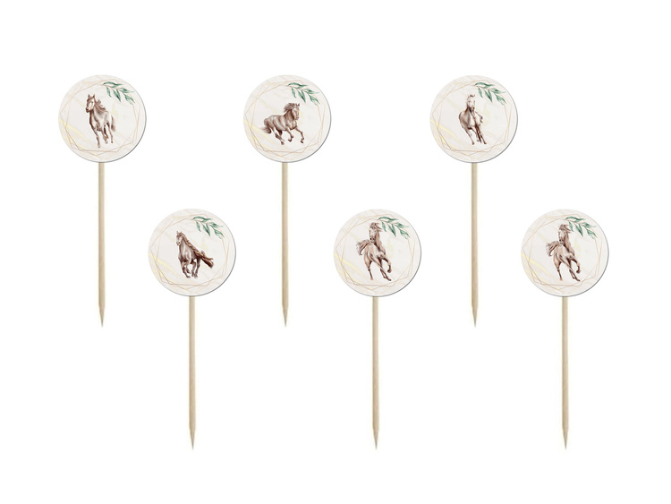 Wysokość patyczka: 6,5 cm, Średnica kółka: 4 cm, Opakowanie zawiera: 6 sztuk dekoracji.