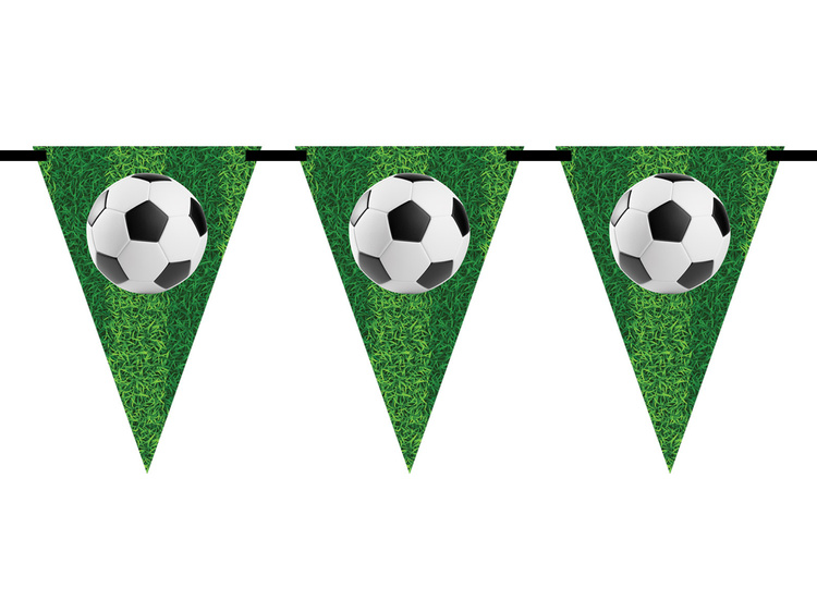 - Baner składa się z 14 papierowych flag z motywem piłki nożnej.
