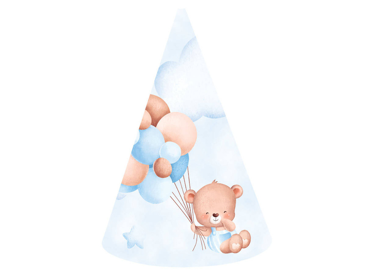 - Błękitny kolor ozdobiony uroczymi grafikami baloników i misiów.
