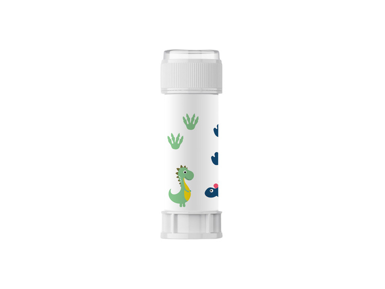 Opakowanie zawiera: 1 sztukę bańki mydlanej z dinozaurami.