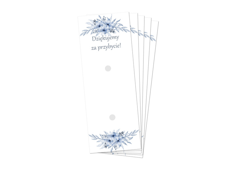 PODZIĘKOWANIA DLA GOŚCI NIEBIESKIE KWIATY 5 SZT MERCI