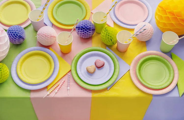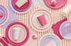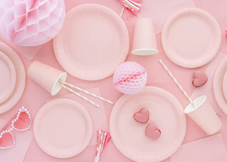 Talerzyki papierowe okrągłe, różowe.