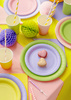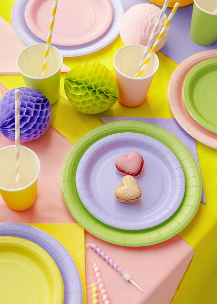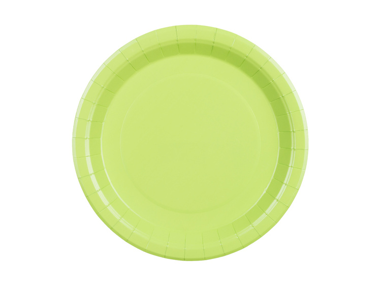 Talerzyki papierowe okrągłe w kolorze jasnozielonym.