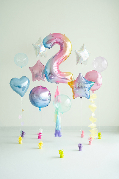 Metalizowany balon foliowy w kształcie cyfry 2 o intensywnym, tęczowym połysku — efektowna dekoracja na urodziny, rocznice i imprezy tematyczne.