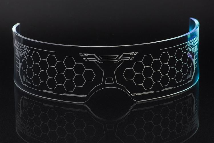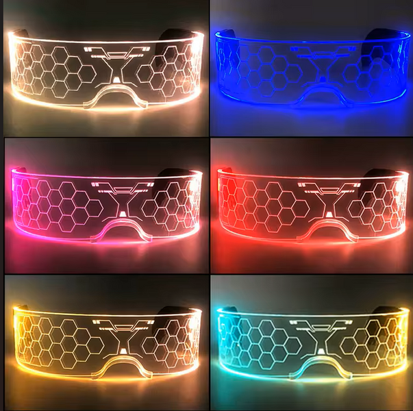 Przenieś się do świata przyszłości dzięki naszym okularom LED o efektownym, cyberpunkowym designie! Przezroczysta konstrukcja z grawerowanymi wzorami.