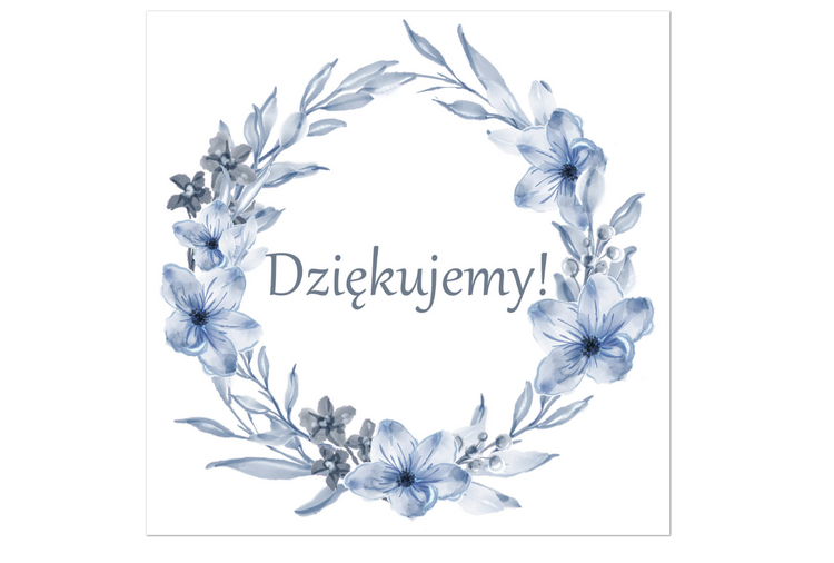 - Motyw: niebieskie kwiaty – subtelny i elegancki wzór, idealny na przyjęcia weselne.