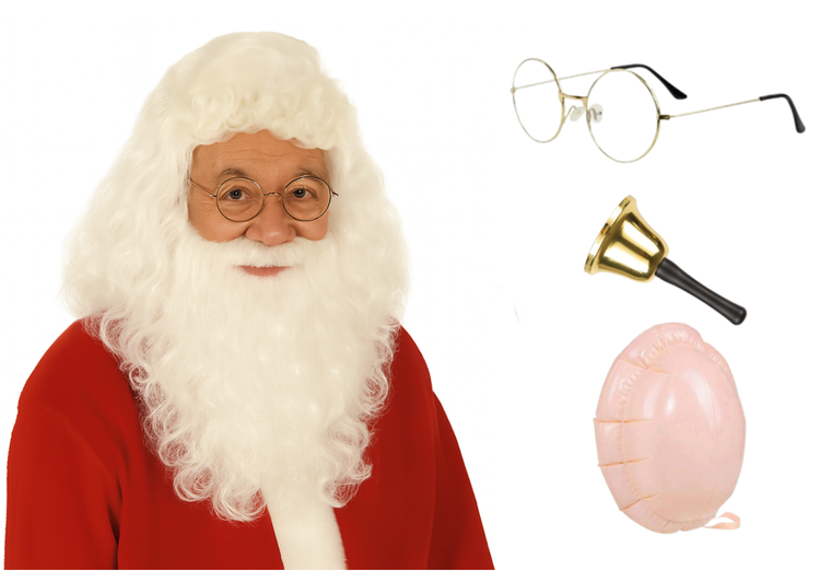 - Okrągłe Okulary Zerówki: metalowe, w kolorze złotym, średnica szkła ok. 5 cm – klasyczny akcent charakterystyczny dla Mikołaja.
