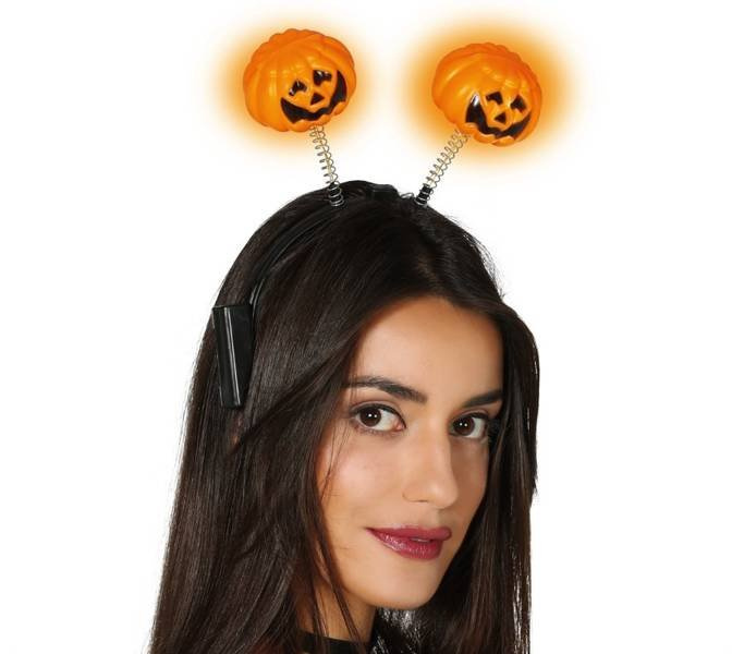 - Opaska LED z dyniami: bezpieczna dla dzieci, wykonana z lekkiego tworzywa i metalu, z pomarańczowymi dyniami na sprężynkach oraz wbudowanymi lampkami LED, które dodają stroju efektownego blasku.