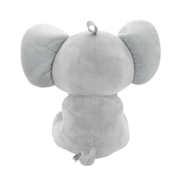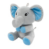 - Pluszowy ciężarek w kształcie słonika o szarym futerku i niebieskich uszach oraz łapkach.