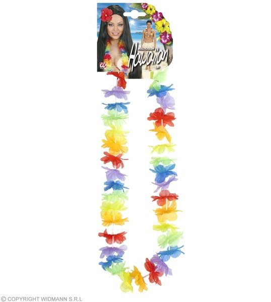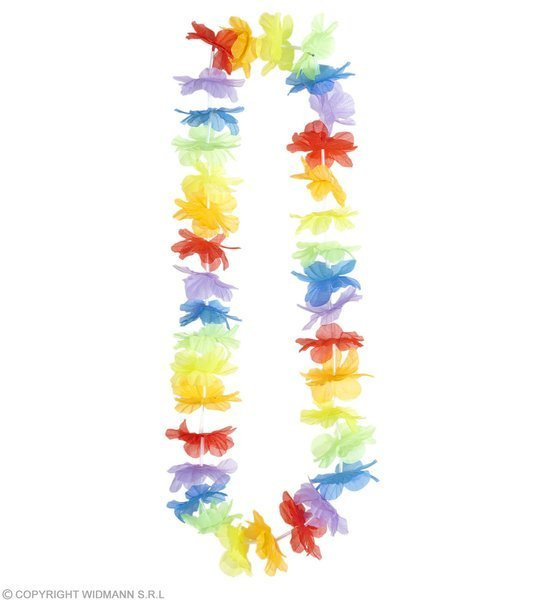 Naszyjnik hawajski wykonany z materiałowych kwiatów nawleczonych na gumkę. Kolor: multikolor.