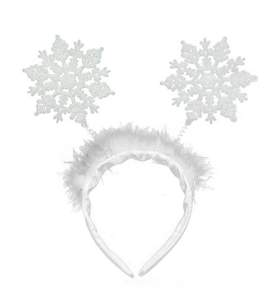 Opaska ze sprężynkami, śnieżynkami i futerkiem.