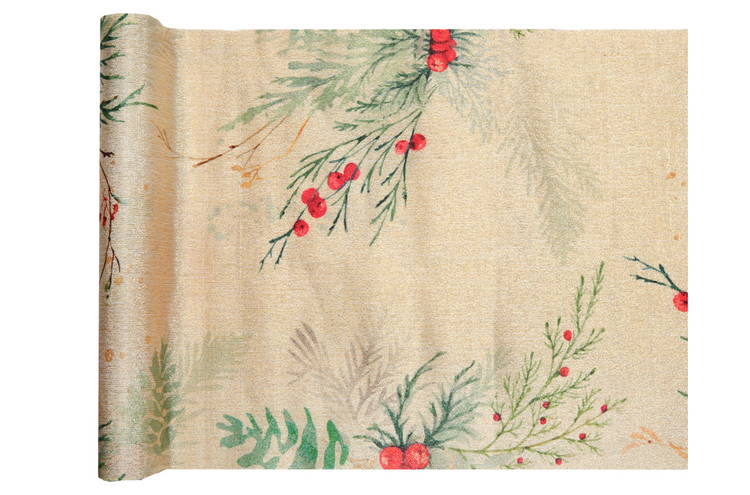 Bieżnik świąteczny Jarzębina Kraft 28 x 250 cm.