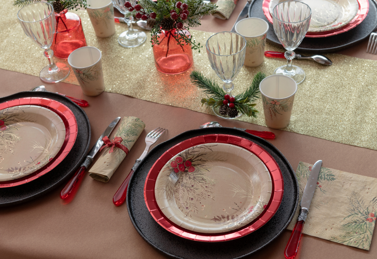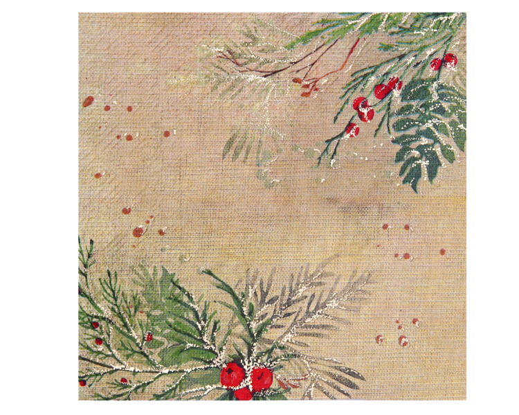 - Wzór: świąteczny motyw jarzębiny oraz igliwia na tle imitującym naturalny kraft.