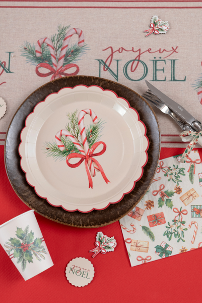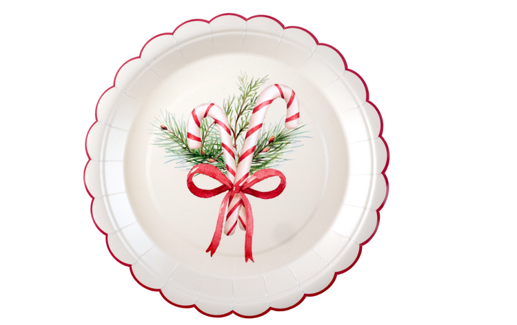 - Wzór: świąteczny bukiet z laskami cukrowymi, igliwiem i czerwoną wstążką.
