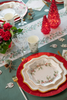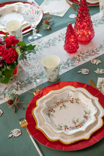 - Wzór: gałązki świerku i jarzębiny z czerwonymi owocami.