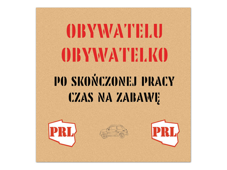- Kolorystyka beżowo-czerwona nawiązuje do stylistyki propagandowych plakatów lat minionych.