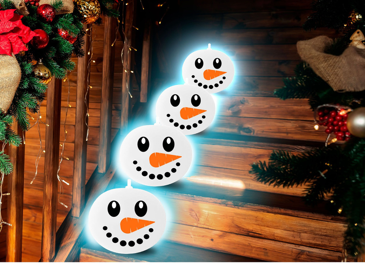 - Zestaw zawiera 5 balonów w kształcie głowy bałwanów z wbudowanym oświetleniem LED.