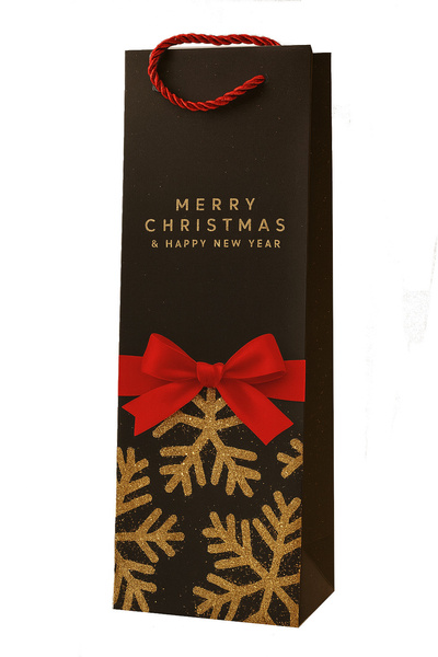 Torba prezentowa z motywem kokardki oraz śnieżynek.