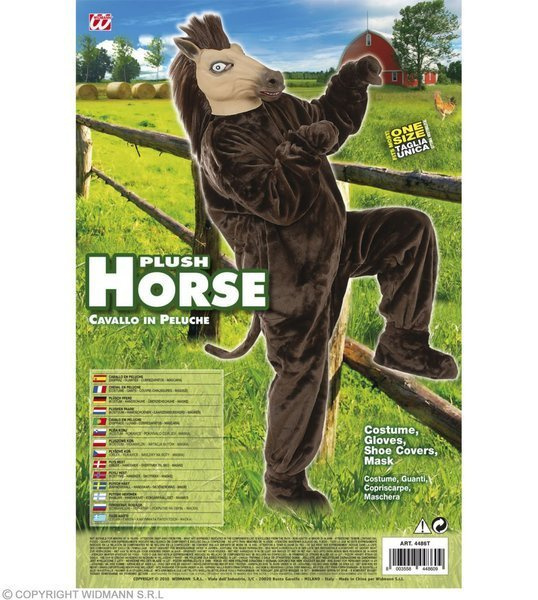 mocowane za pomocą elastycznej gumki. Przód maski lateksowy, tył zdobi gęsta grzywa.