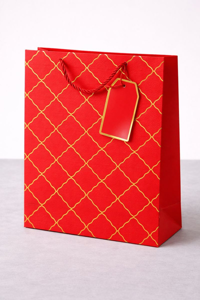 Torebka prezentowa czerwona z teksturą skóry.