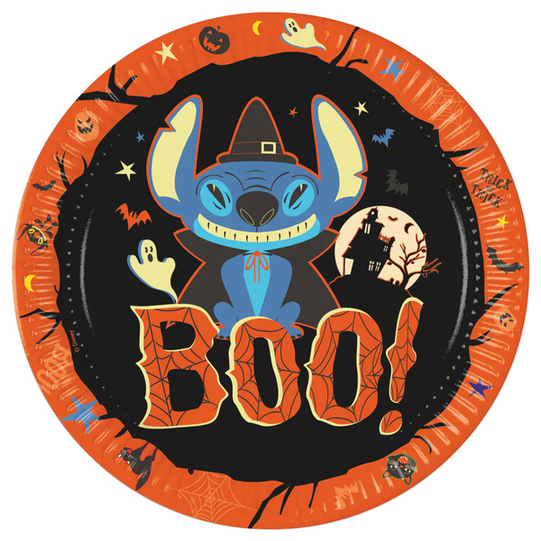 - Papierowe talerzyki z motywem Stitch Halloween – oryginalna grafika przyciągająca wzrok i budująca wyjątkową atmosferę.