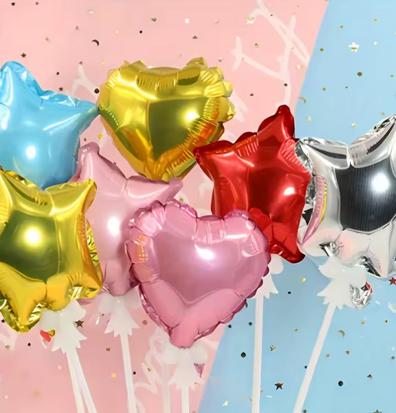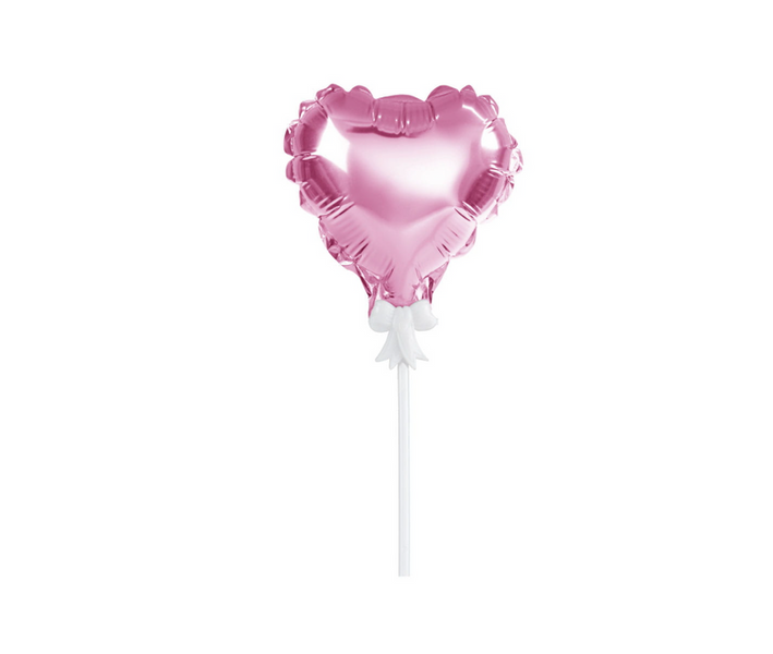 BALON FOLIOWY NA PATYCZKU SERCE RÓŻOWY 10 CM