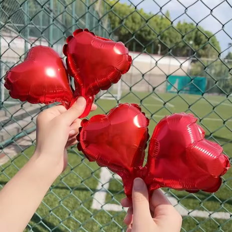 BALON FOLIOWY NA PATYCZKU SERCE CZERWONE 10 CM