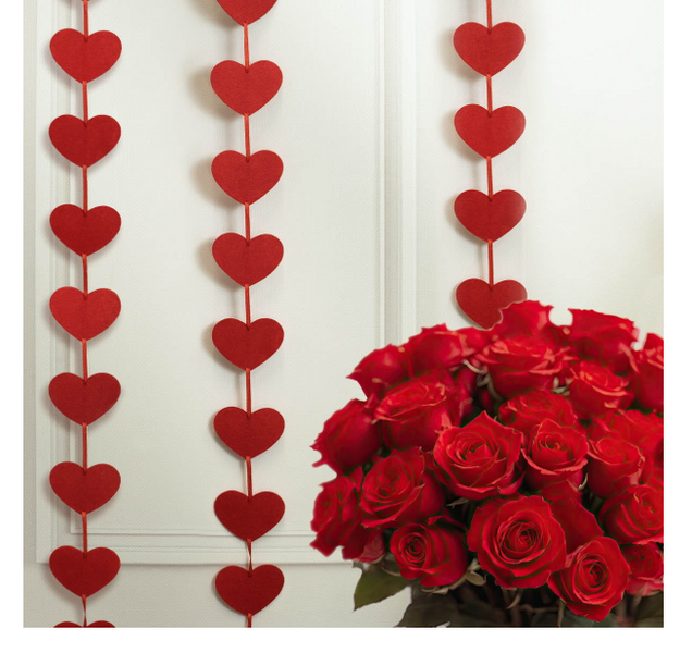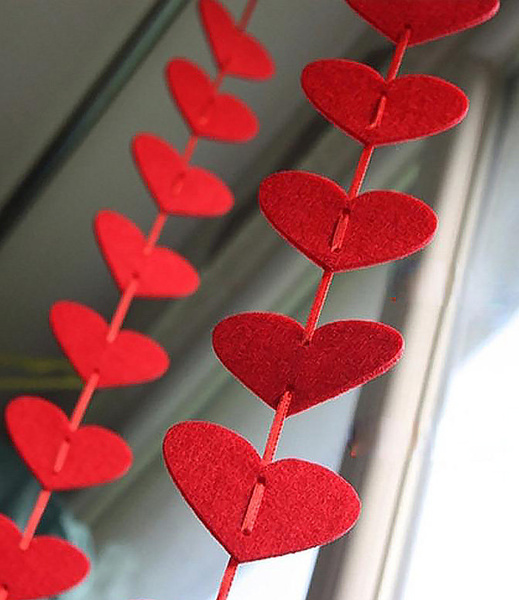 - Pionowa dekoracja w postaci tasiemki ozdobionej czerwonymi serduszkami.