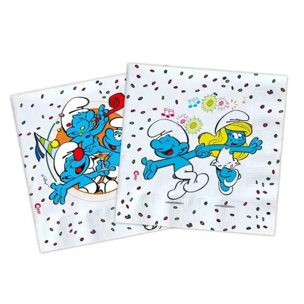 -serwetki papierowe białe z kolorowym nadrukiem Smerfów, 20szt.