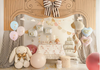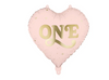 - Balon foliowy w kształcie serca z napisem „One” w kolorze jasnoróżowym ze złotym nadrukiem.
