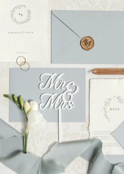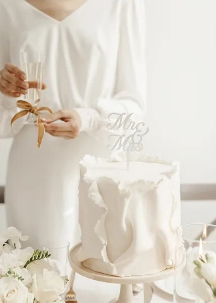 Topper akrylowy na tort MR & MRS w kolorze białym.