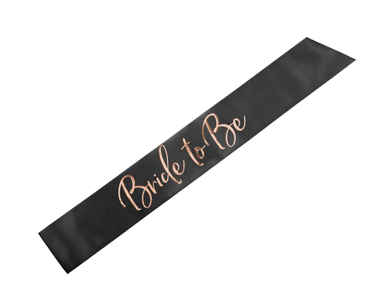 Szarfa satynowa Bride to be w kolorze czarnym.