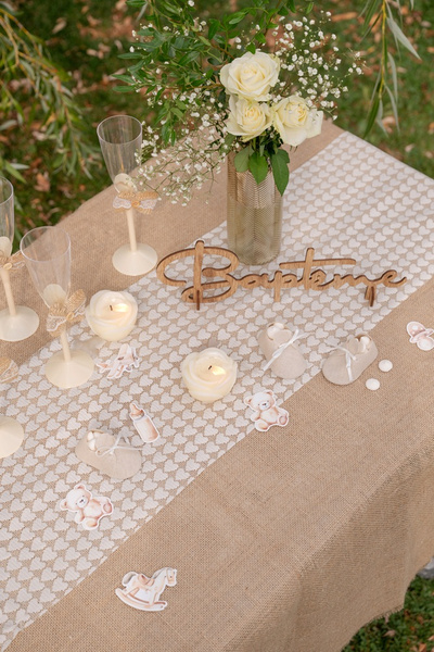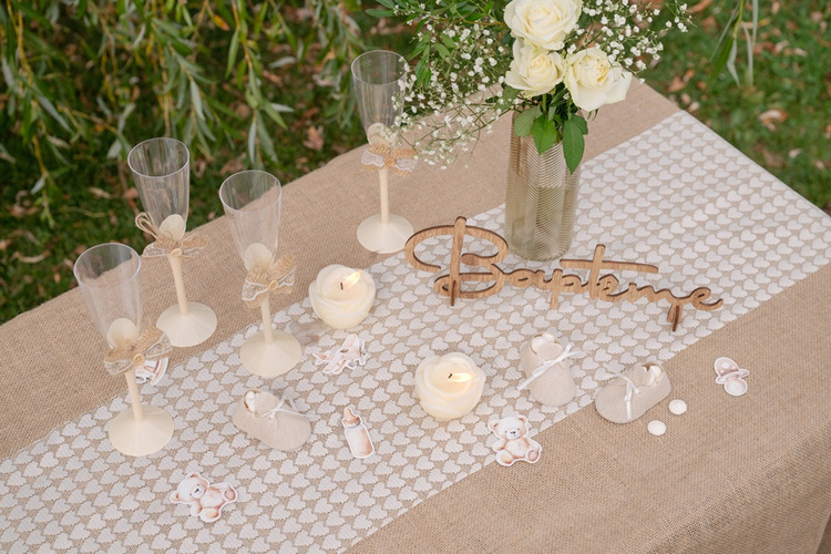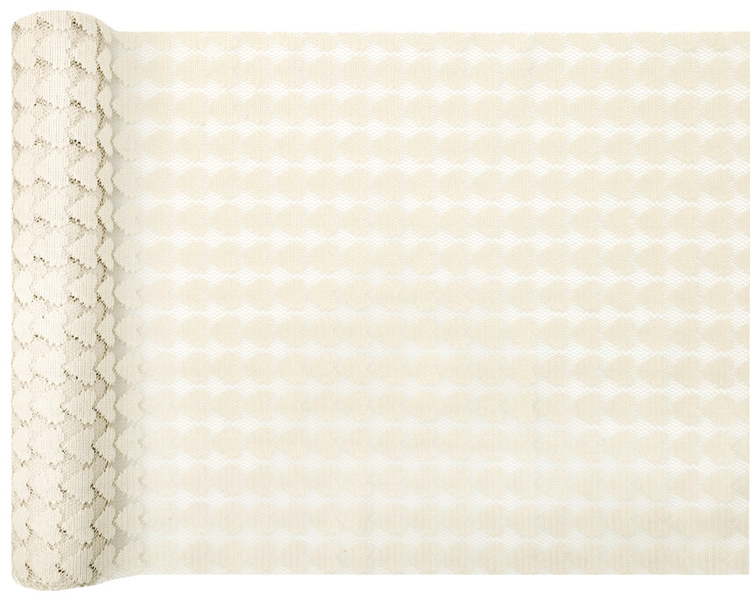 Bieżnik koronkowy w kolorze kości słoniowej.