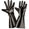 Rękawiczki wykonane z materiału imitującego skórę. Posiadają doszyty mankiet, który nachodzi na ubranie.