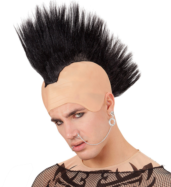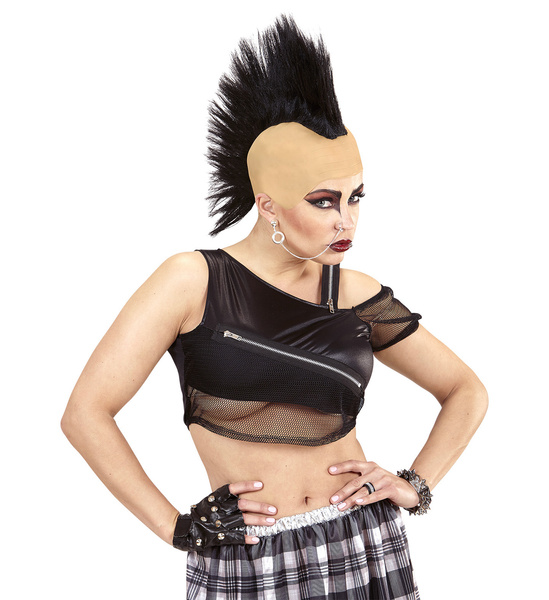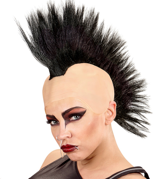 Czarny irokez, przymocowany do lateksowego czepka. Rozmiar uniwersalny.