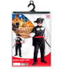 Strój w kolorze czarnym, zdobiony białymi wstawkami oraz czerwonym paskiem ze znakiem błyskawicy.