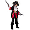 Płaszcz z żabotem w kolorze czerni i czerwieni oraz bieli. Spodnie czarne, na gumce w pasie. Nakładki na buty czarne,na gumce. Opaska na oko, czarna na gumce. Pasek czarny, ze złotą klamrą.